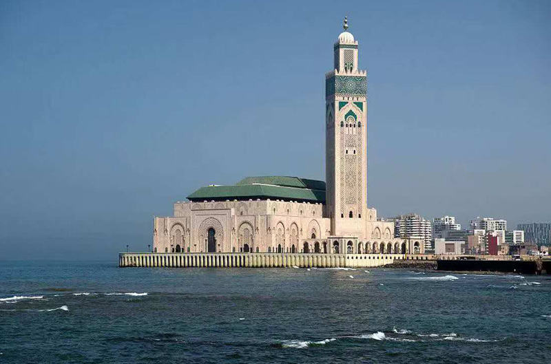 Casablanca The largest mosque in Morocco, and among the largest in the world. Built on the sea, its minaret reaches a height of more than 200 meters. Traditional Moroccan decoration and architecture blend with modern technology, creating a stunning scene.