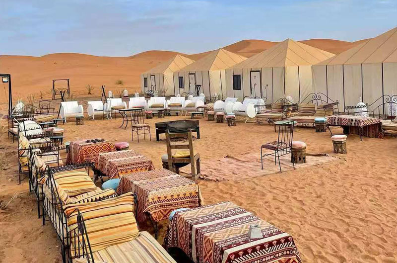 Overnight in a bivouac (traditional tent), in the middle of the desert, with drums and Amazigh music playing around a fire. The stars are clear and unpolluted, a view you won't forget.